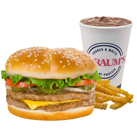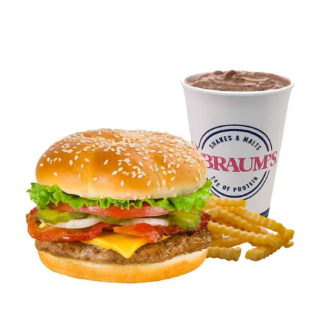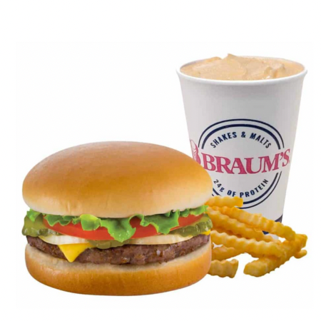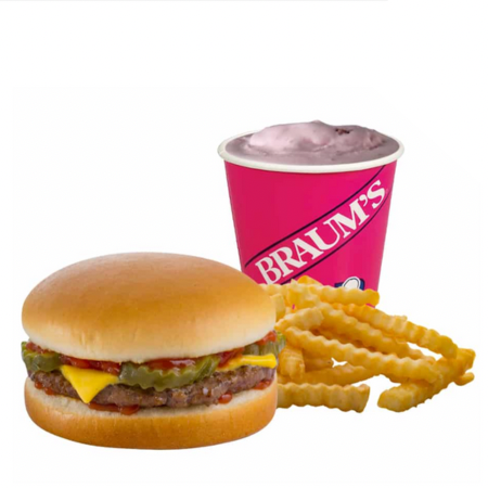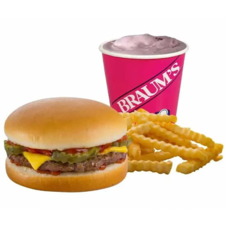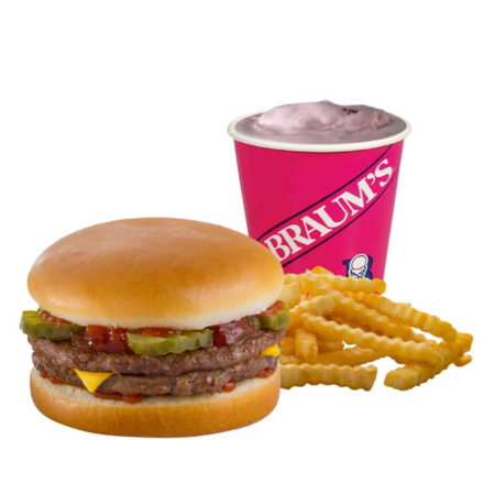 At Braum’s, we start with 100% pure beef patties, topped with your choice of fresh toppings and cheese - all on a sesame seed bun baked fresh in Braum’s bakery! A juicy Braum’s burger and fries leave you happy and satisfied. Now that’s what lunch dreams are made of.