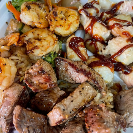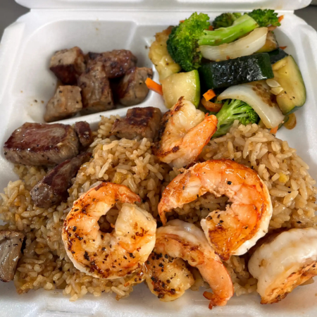 All entrees served with hibachi fried rice (eggs & rice) and hibachi vegetable (onions, carrots and zucchini)