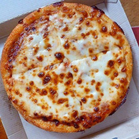 Your favorite cheese pizza, with your choice of crust covered in classic marinara sauce and topped with gooey mozzarella cheese. It's anything but "plain."