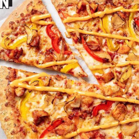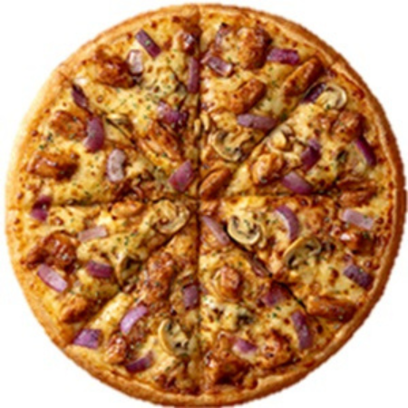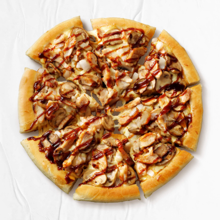 This BBQ pizza comes topped with grilled chicken, bacon and red onion. Who's the grillmaster now?