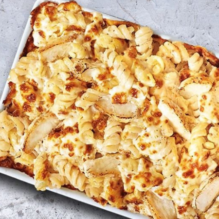 We took your favorite food and put it on a pizza. With tangy buffalo sauce, tender chicken, red onions and banana peppers, this beautiful masterpiece tastes like a football game feels.